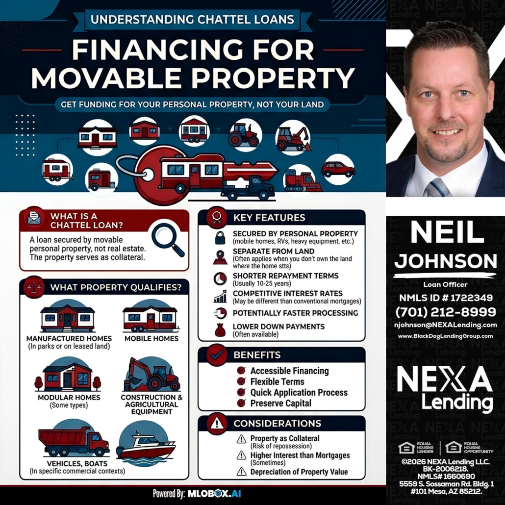 Hi, my name is Neil Johnson. I’m a Loan Officer offering personalized mortgage solutions, fast customized quotes, great rates and service with integrity. If you’re interested in learning more about the Chattel loan or any other, just let me know and I’ll walk you through your options.