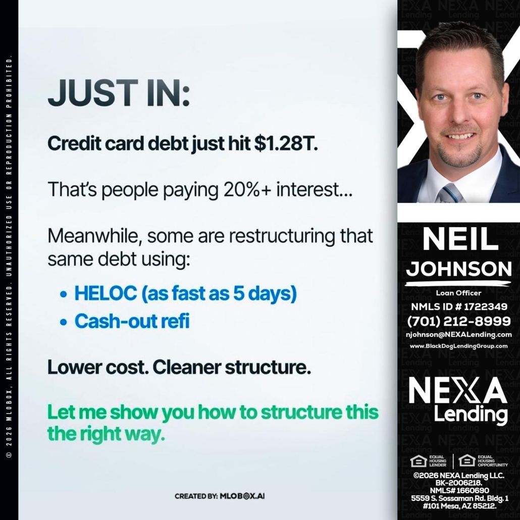 JUST IN - Neil Johnson -Branch ManagerHi, my name is Neil Johnson. I’m a Loan Officer with NEXA Lending LLC., offering personalized mortgage solutions, fast customized quotes, great rates and service with integrity.