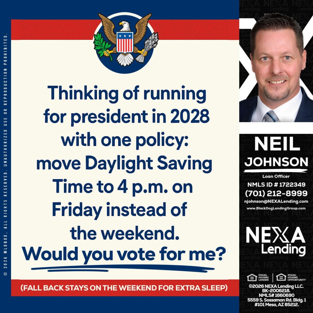 THINKING OF RUNING - Neil Johnson -Branch ManagerHi, my name is Neil Johnson. I’m a Loan Officer with NEXA Lending LLC., offering personalized mortgage solutions, fast customized quotes, great rates and service with integrity.