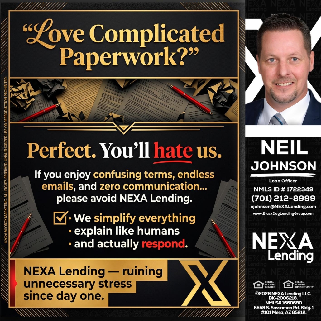 Hi, my name is Neil Johnson. I’m a Loan Officer with NEXA Lending LLC., offering personalized mortgage solutions, fast customized quotes, great rates and service with integrity.